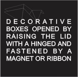 Decorative or storage boxes may be opened by removing the lid with a hinge and fastened by a magnet or ribbon.