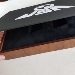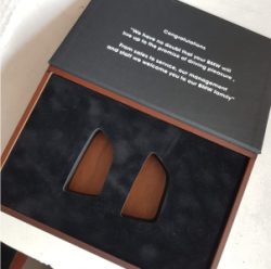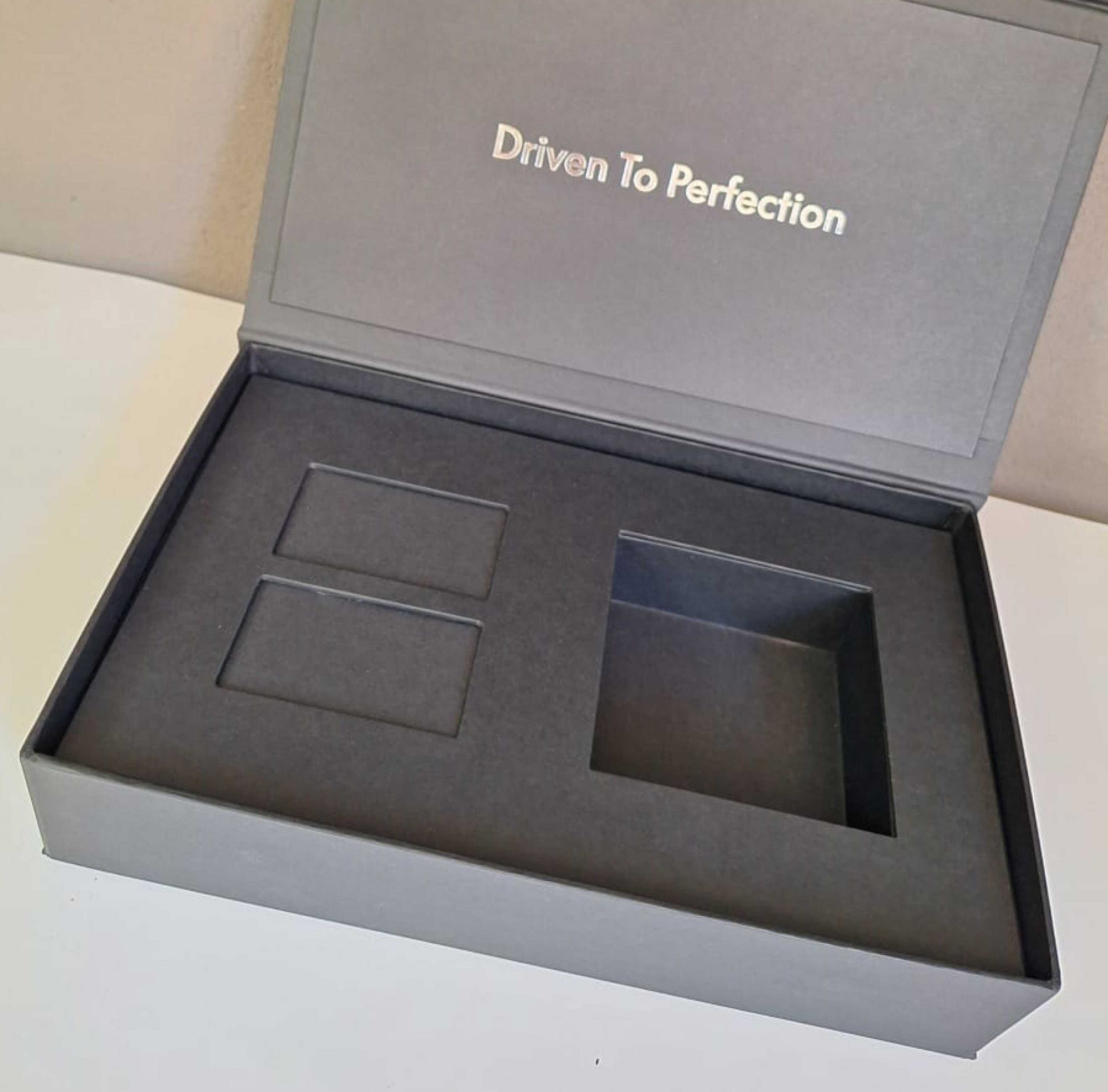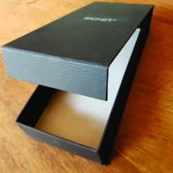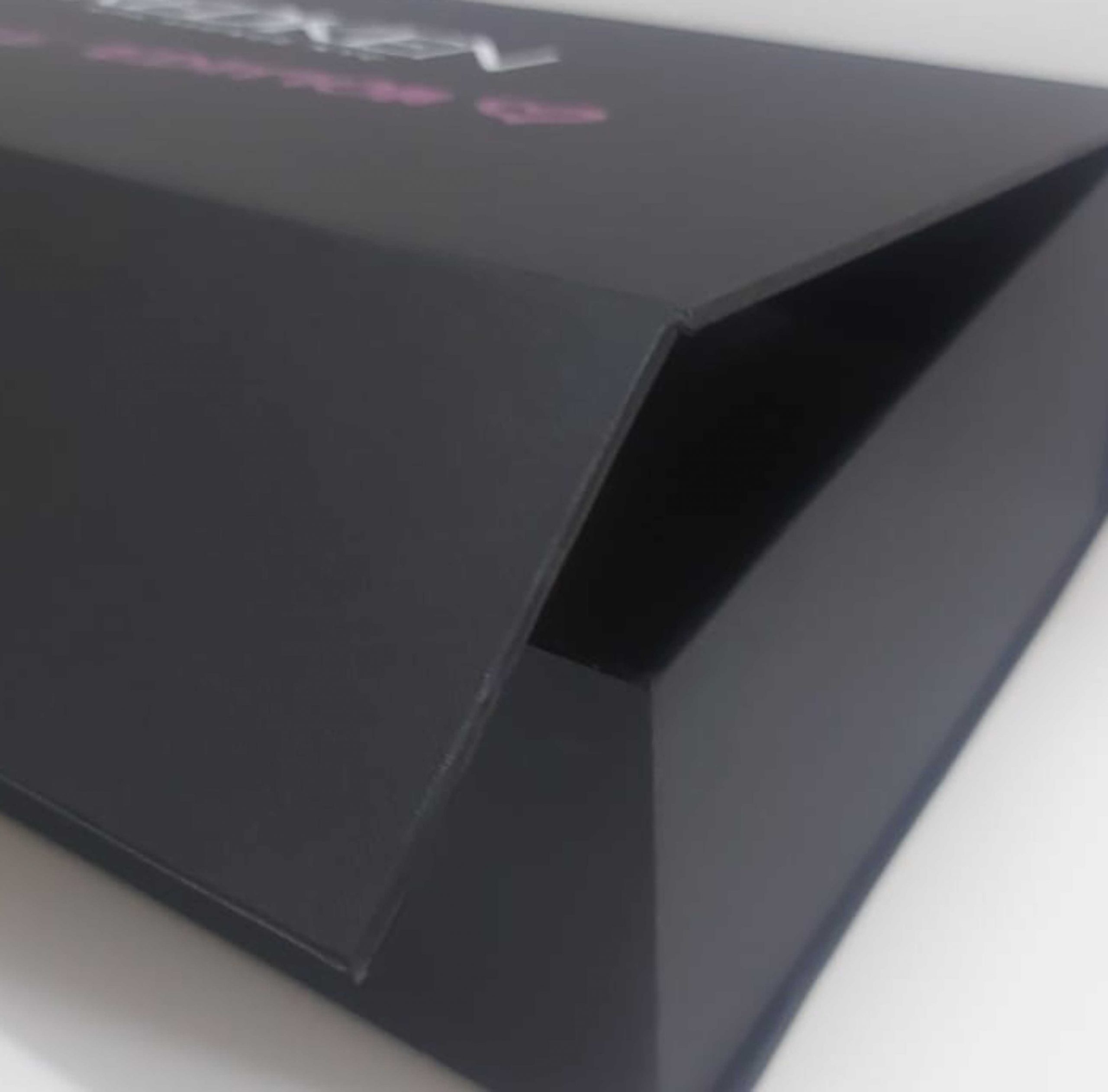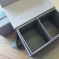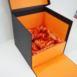 A single hinged lid with hinged flap fastens typically with a hidden magnet to the base of the box. The box comprises of two parts, the tray and the cover with hinged sides. The base is then glued to the cover to make up the final box. This is a very high-end look and most popular with elaborate product display like bespoke invitations, or extravagant gifts.