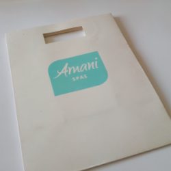 A paper bag is a preformed container made of paper, usually with an opening at one end. It can be made from various paper stock to suit durability or affordability. All bags can be fully branded in printing, foiling and silk screening. Handles can consist of rope, ribbon, slit handles or no handles. Paper bags are used for packaging and/or carrying items. Silk screening is a more cost-effective branding option especially on a medium to large scale.